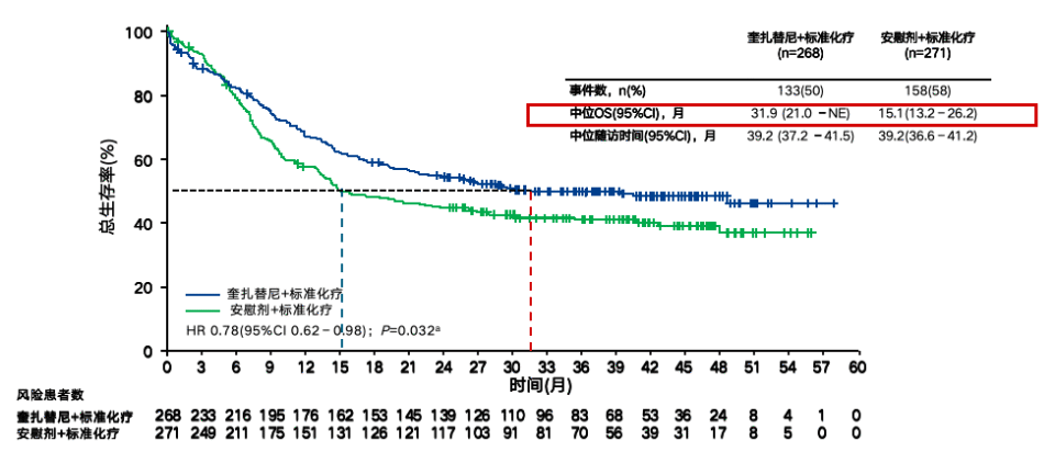 奎扎替尼的关键性研究QuANTUM-First主要聚焦于新诊断的FLT3-ITD阳性急性髓系白血病患者,采用奎扎替尼或安慰剂联合化疗进行对照。结果显示,与安慰剂组相比,奎扎替尼组患者的总生存期(OS)显著延长至31.9个月,提升幅度可达一倍以上(安慰剂组15.1个月;HR 0.78),同时其安全性特征良好,未出现新的安全性信号,证实了奎扎替尼在FLT3-ITD阳性急性髓系白血病患者中具有明确的获益。