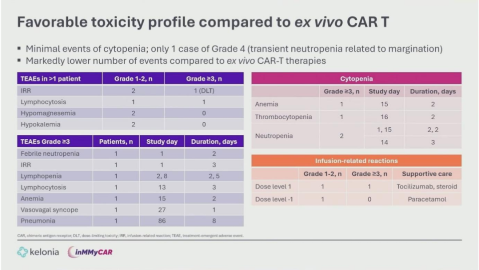 inMMyCAR研究(NCT07075185)是一项多中心、开放标签、剂量递增的1期临床试验。本报告涵盖了前四名复发/难治性多发性骨髓瘤(RRMM)患者。