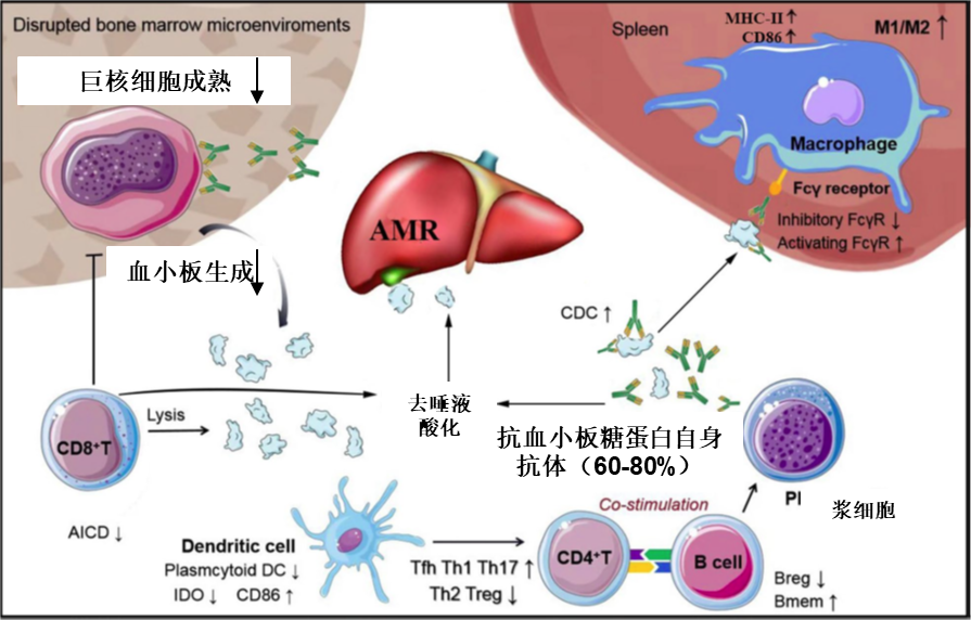 随着临床研究的持续深入,学界对ITP病理机制的认知已日益深化。ITP不再被简单界定为单纯的抗体介导性疾病,而是一种涉及B细胞、T细胞、巨噬细胞及骨髓微环境等多重免疫环节失调的系统性免疫紊乱疾病。具体而言,自身抗体通过Fc受体介导的吞噬和补体途径加速血小板破坏,同时,细胞毒性T细胞(CTL)的直接攻击和干扰素-γ等细胞因子对巨噬细胞的激活,构成了复杂的细胞免疫破坏网络。另一方面,自身抗体或炎症因子(如TNF-α)抑制巨核细胞成熟,加之调节性T细胞(Treg)功能缺陷、辅助性T细胞(Th1/Th17)比例失衡等骨髓免疫微环境异常,共同导致了血小板“生产不足”。这种多环节、多细胞参与的免疫紊乱,为靶向治疗提供了多元靶点。
