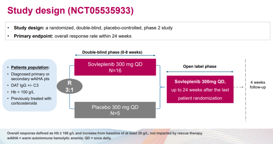 sovleplenib (HMPL-523) in patients with warm antibody autoimmune hemolytic anemia. 2024 EHA:Abstract S297.