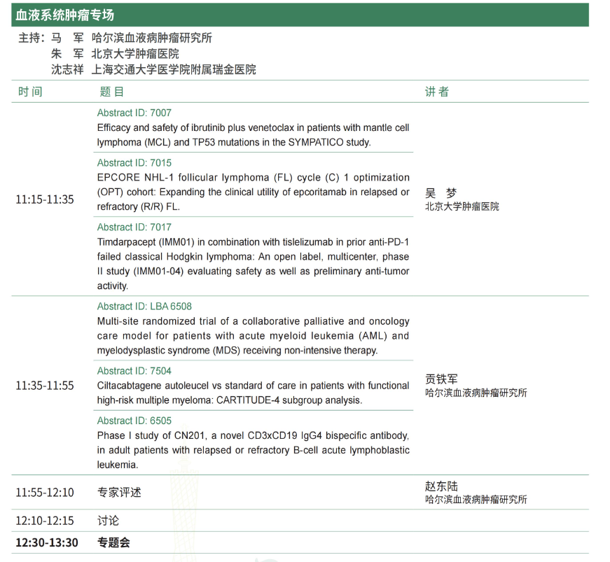 2024年BOC/BOA的血液系统肿瘤专场在疾病领域方面涵盖了TP53突变套细胞淋巴瘤( MCL ) 、 复 发 难 治 滤 泡 性 淋 巴 瘤 ( R/R FL ) 、 多 线 治 疗 失 败 的 霍 奇 金 淋 巴 瘤(cHL)、急性髓性白血病(AML)/骨髓增生异常综合征(MDS)、功能性高危多发性骨髓瘤(MM)、复发难治B细胞急性淋巴细胞白血病(R/R B-ALL)等多种常见、高危血液系统肿瘤;在治疗策略层面则涉及了靶向药物联合使用、双特异性抗体、双免疫检查点抑制剂联合使用、细胞免疫治疗等创新治疗策略或优化治疗方案,极具临床参考价值和实践意义。让我们携手共进,共同见证中国血液肿瘤的发展史!
