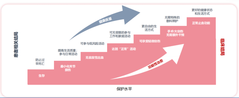 随着血友病治疗的持续发展及临床管理的不断优化,血友病患者的临床结局获得明显改善,治疗目标也不断提高:从最初保证患者生存,发展为使患者获得正常的止血功能,拥有和非血友病人群相同的生活质量。