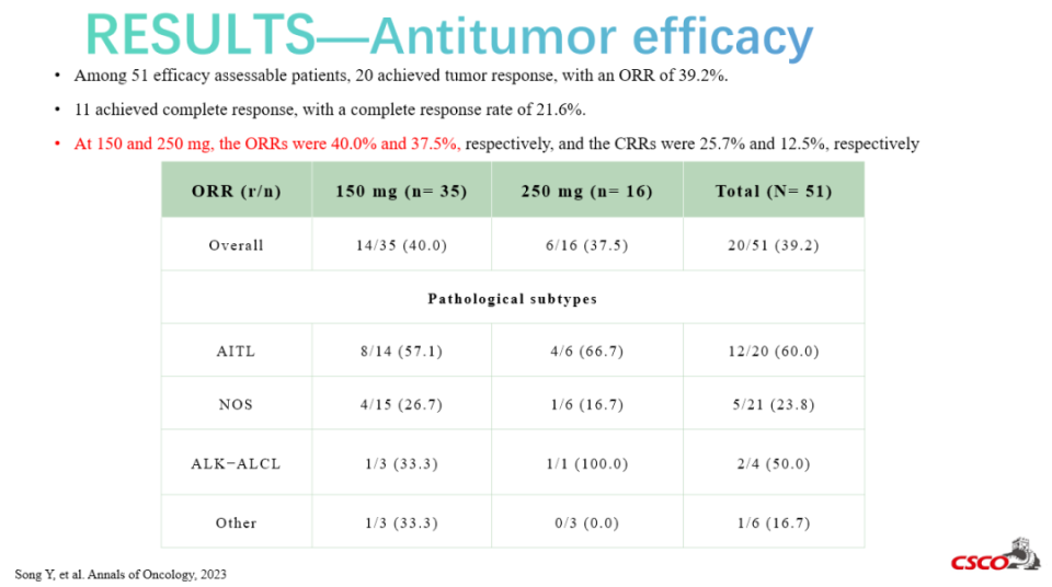 图5. 戈利昔替尼治疗R/R PTCL的I期研究主要研究结果
