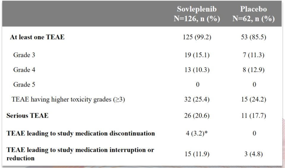 *索乐匹尼布组中2例4级不良事件与索乐匹尼布治疗不相关