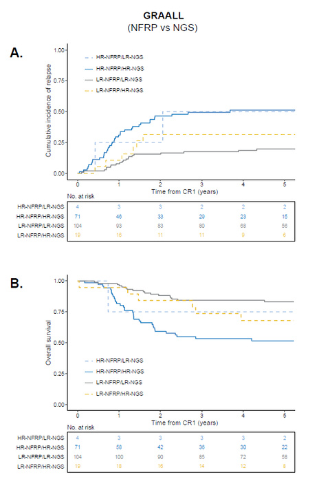 分析计划:首先在GRAALL队列中比较了先前公布的NOTCH1/FBXW7/RAS/PTEN分层系统(NFRP)在Sanger或NGS技术的结果。然后构建了一个新的NGS分层系统。最后,我们评估了新NGS分层系统的预后影响,同时考虑了常规预后变量:WBC和MRD1,分别使用先前公布的阈值≥200x109/L和≥10-4。并在儿童队列中进行验证。
