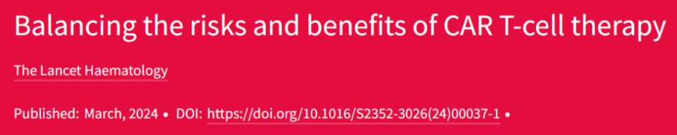 参考来源:The Lancet Haematology. Balancing the risks and benefits of CAR-T-cell therapy. Lancet Haematol. 2024 Mar;11(3):e169. doi: 10.1016/S2352-3026(24)00037-1. PMID: 38423693.