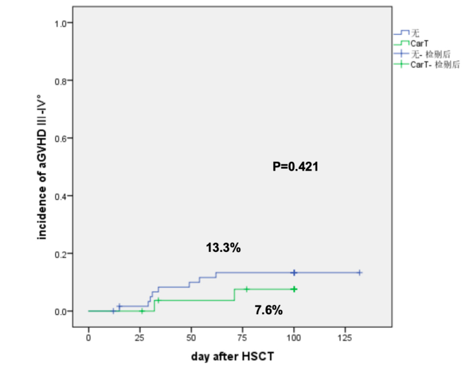 图3、两组Ⅲ-Ⅳ级aGVHD发生率比较