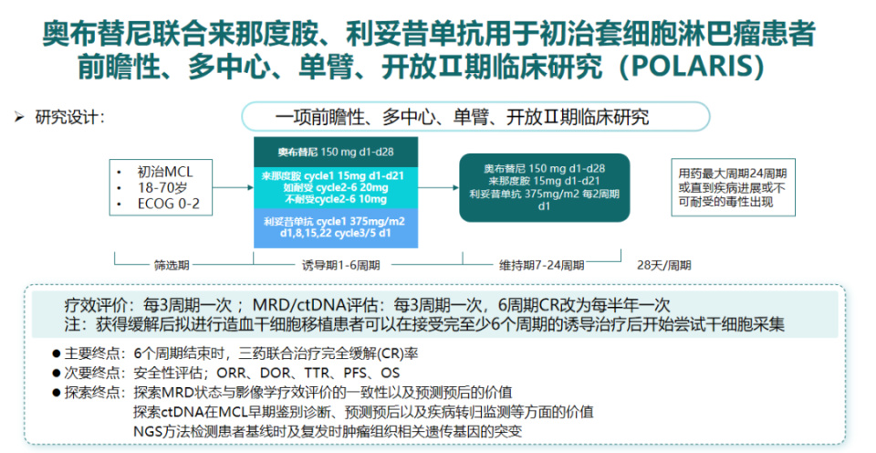 因此,POLARIS研究的结果证实了奥布替尼联合方案在未经治疗的MCL患者中的有效性和安全性,为chemo-free治疗方案的临床应用提供了有力的证据。随着对MCL治疗的不断探索和新型药物的不断涌现,期待为MCL患者带来更多的治疗选择和更好的预后。