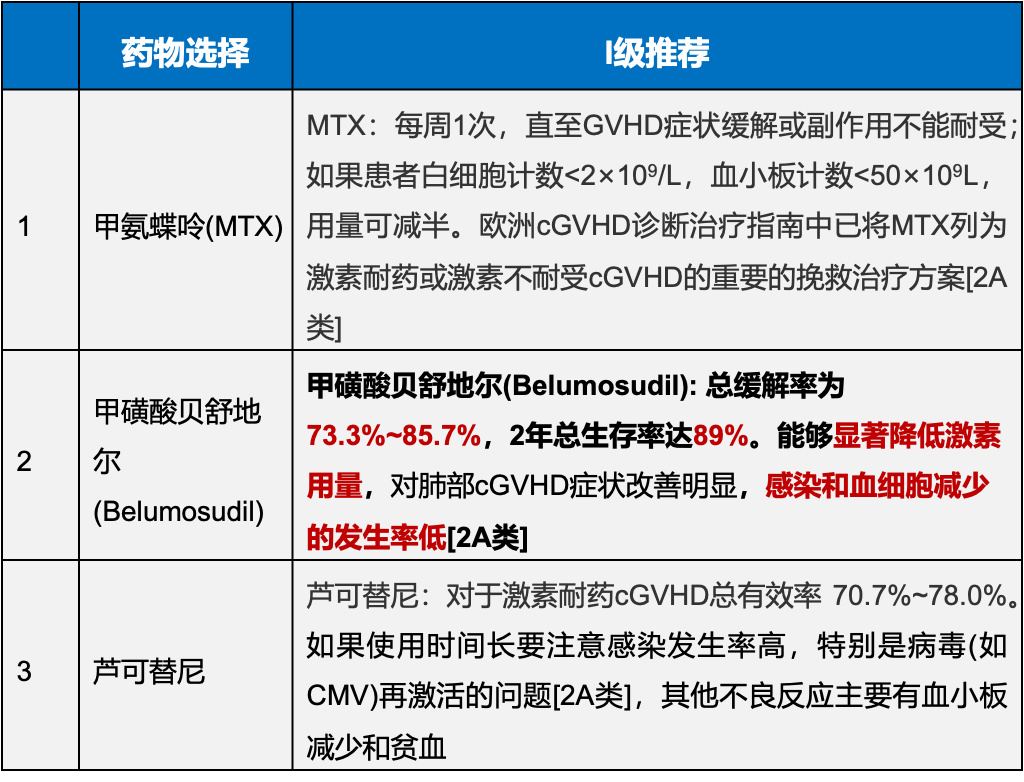 表1. cGVHD二线治疗的Ⅰ级推荐药物