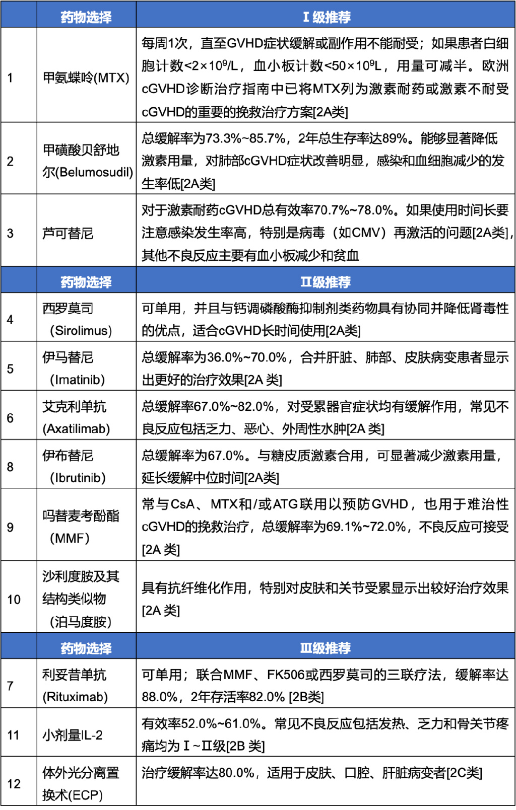 表1. 《CSCO 造血干细胞移植治疗血液系统疾病指南(2025版) 》对于cGVHD的二线治疗推荐