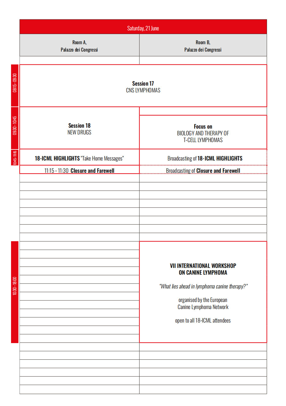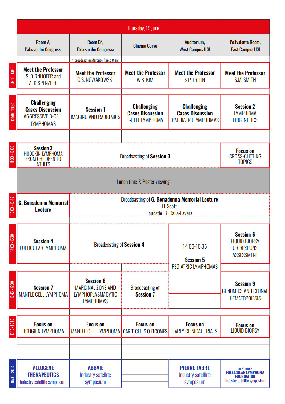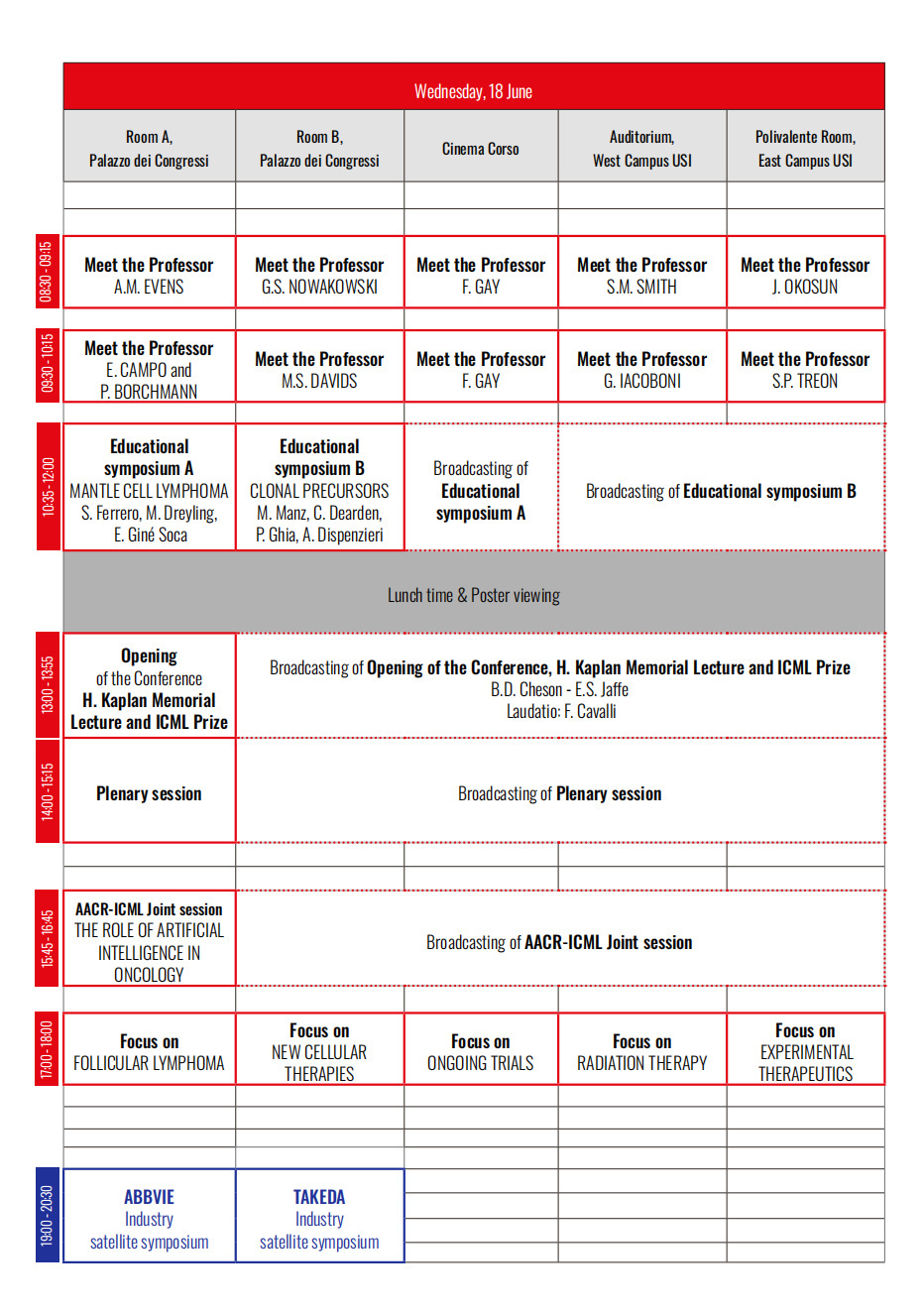 此外,还包括科学专场(Scientific Program)、行业专场(Industry Program)、独立卫星研讨会(Independent Satellite Symposia)、研习专场(Workshop)、行业赞助研讨会(Industry Sponsored Symposium)、ESMO-ICML专题讲座(ESMO-ICML Special Lecture)、IBSA基金会专场(IBSA Foundation Special Forum)、闭门研讨会(Closed Workshop Report)、临床病例讨论专场(Clinical Cases Discussion)等专场,通过学术纵深与横向协作的有机融合,构建起覆盖淋巴瘤全链条管理的知识网络,为参会者提供兼具科学创新性与实践指导性的学术体验。