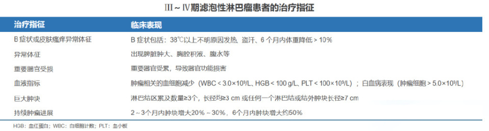 对于无治疗指征的患者,启动抗淋巴瘤治疗的中位时间为31个月,目前优先推荐采取观察等待。预期寿命不足10年的患者如果诊断时即采取R短程治疗,可能终身都无需进一步治疗。识别出可能会出现短期进展的患者,包括具有结外或多个淋巴结部位累及、PET-CT提示肿瘤代谢体积较高、LDH快速升高、FLIPI评分高危,也可给予早期干预。
