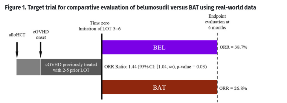 本研究显示,在真实世界中,对于复发性/类固醇难治性cGVHD患者,贝舒地尔的疗效优于BAT。本研究中贝舒地尔治疗患者的安全性与之前已确定的临床特征一致。