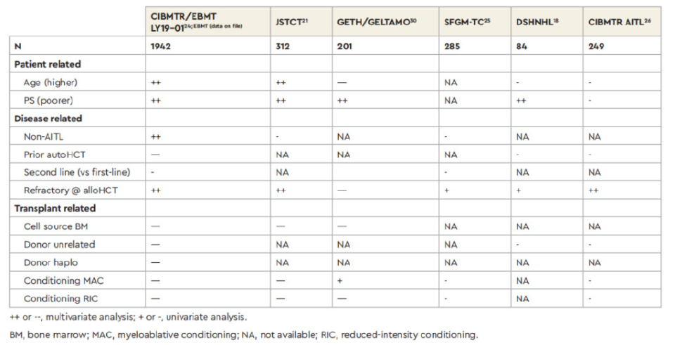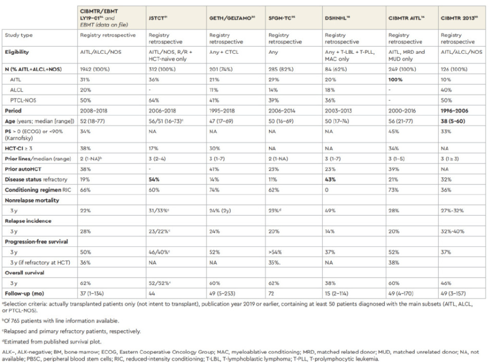 近期关于PTCL的较大规模alloHCT真实世界研究