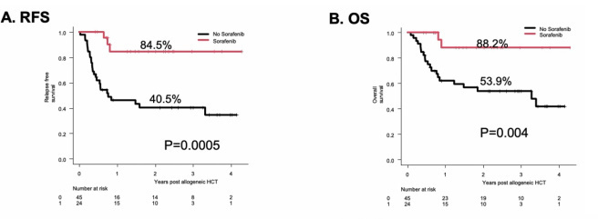 图3. 索拉非尼作为FLT3-ITD突变AML患者移植后维持治疗,能改善生存结局