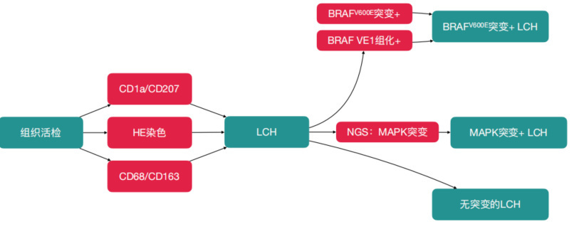 LCH是以丝裂原活化蛋白激酶(MAPK)信号通路激活为主要分子特征。在LCH中,约50%患者存在着BRAFV600E突变,其他包括MAP2K1基因突变、MAP3K基因突变等。