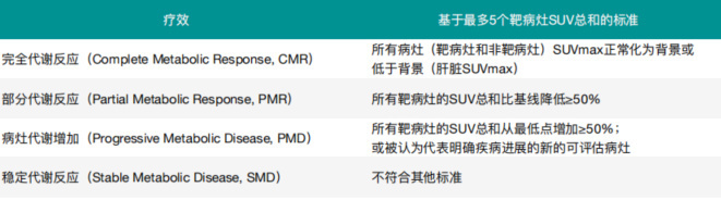 传统影像学(CT/MRI)对LCH疗效评估价值有限,尤其对肺部病变等病灶形态学改变及垂体功能改善等器官损害情况。目前,推荐采用PET应答评估标准(PRC)。靶病灶最多选择5个(每器官≤2个),要求SUVmax >1.5倍肝脏SUVmean(肝受累者>2倍纵隔血池SUVmean)。每个靶病灶的18F-FDG摄取值(SUV)计算方法为靶病灶SUVmax – 肝脏SUVmax,如果结果为负数,定义为0。
