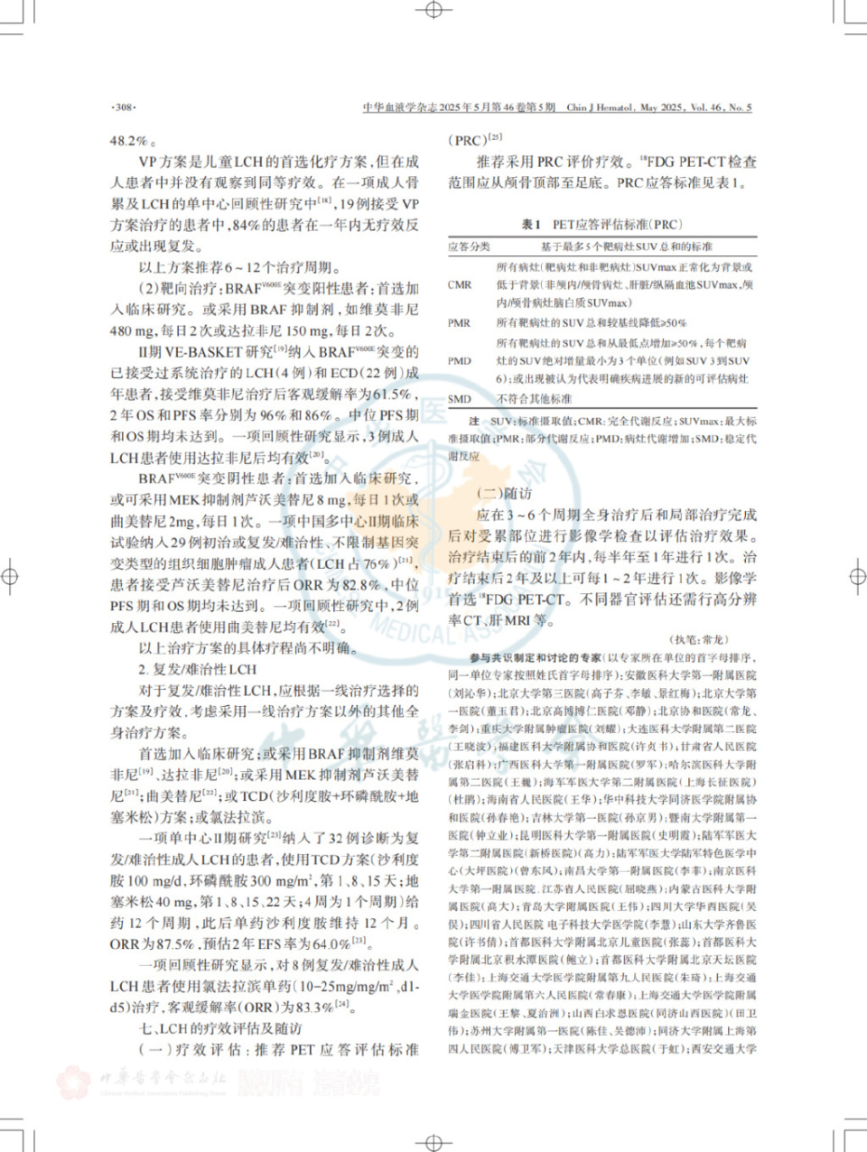 综上所述,LCH是一种由MAPK通路突变驱动的罕见组织细胞肿瘤,临床异质性强且易误诊。诊断需结合病理形态、免疫组化及分子检测,治疗策略应根据分型分层制定。随着靶向药物的发展,基于分子特征的精准治疗有望成为一线选择。疗效评价推荐采用PET-CT代谢标准以客观反映治疗反应。相信随着基础研究的深入及新型治疗手段的涌现,LCH的临床管理将迎来新的发展机遇。