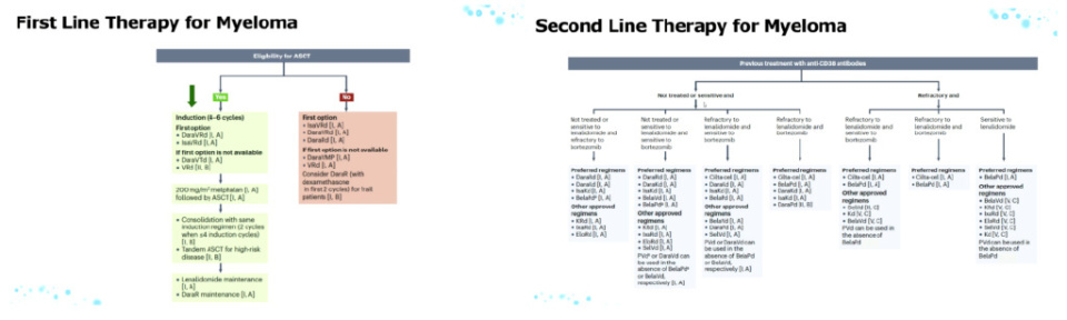 In addition, Belantamab mafodotin has re-emerged in combination regimens, demonstrating promising results when paired with either bortezomib and dexamethasone or pomalidomide and dexamethasone in patients previously treated with one to three lines of therapy. As a result, the therapeutic landscape for multiple myeloma has become increasingly complex. While these novel therapies offer clinicians more tools than ever before, they also raise new challenges in selecting the most appropriate treatment for each patient. It is no longer feasible to apply a one-size-fits-all approach, and personalized decision-making is essential.
