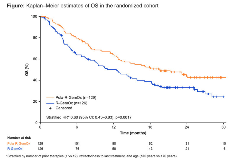 POLARGO试验随机队列中OS的Kaplan-Meier生存曲线
