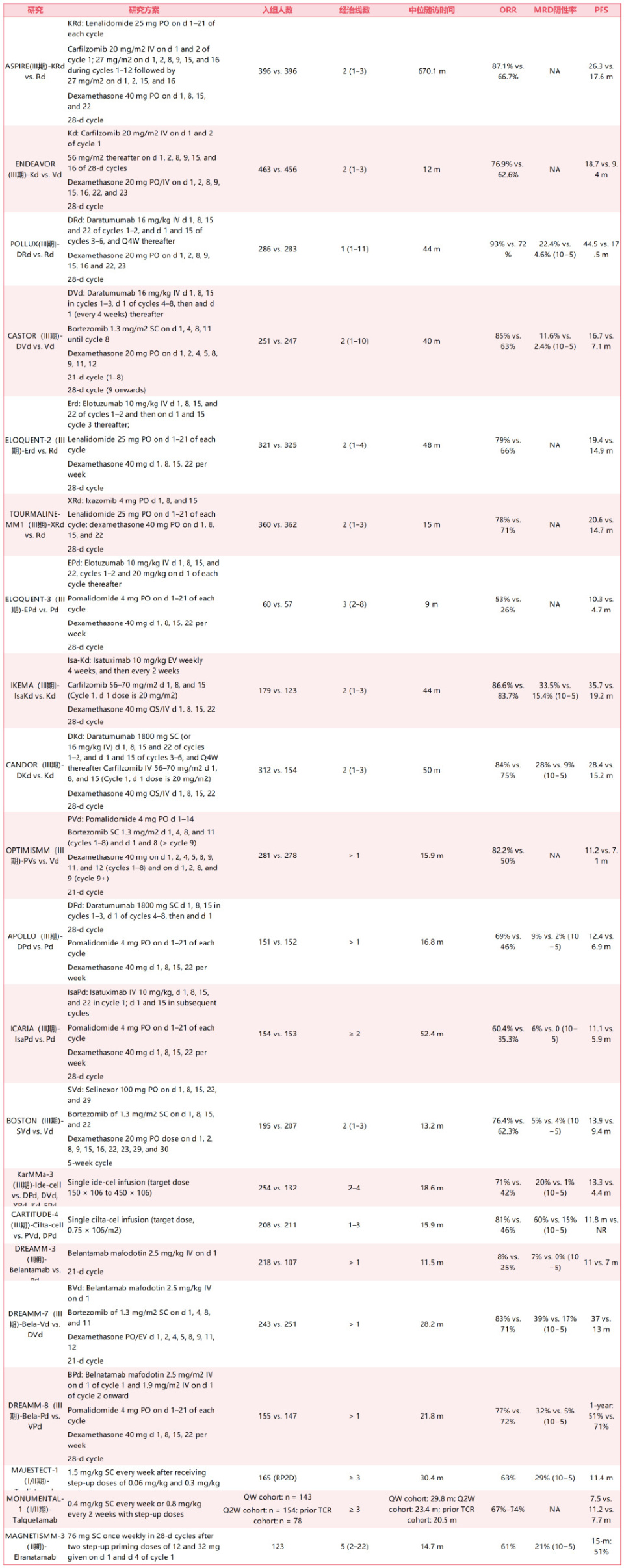 复发/难治性多发性骨髓瘤(RRMM)治疗方案总结