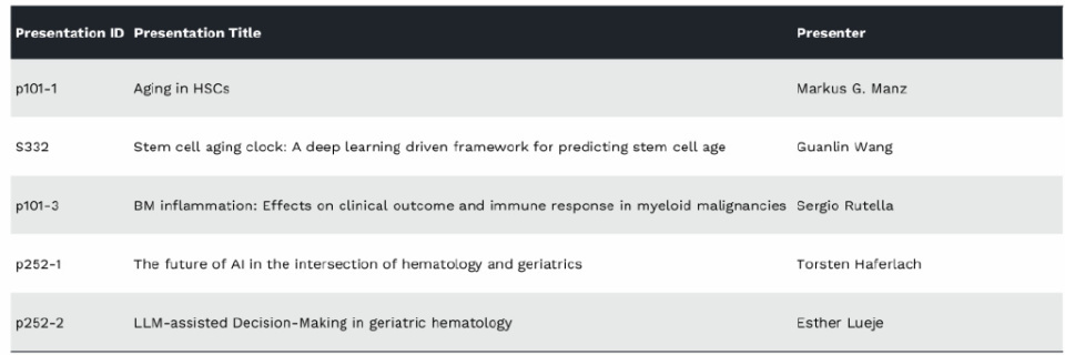 [7]Manz MG. Aging in HSCs. Oral presentation p101-1 at EHA2025.