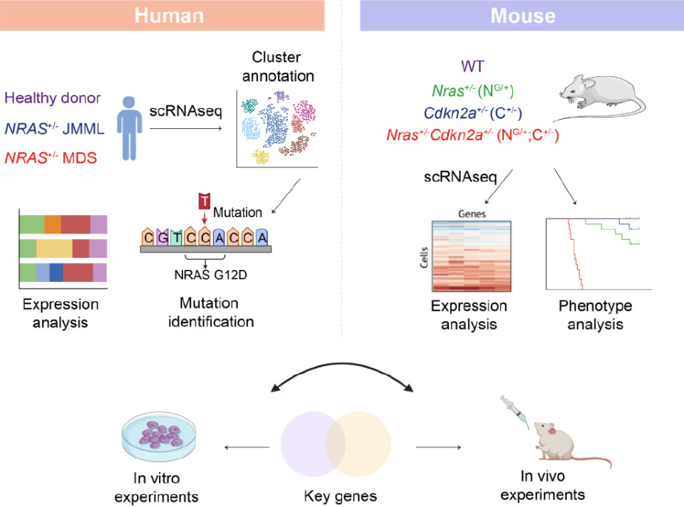 竺晓凡教授:NRAS突变广泛存在于多种儿童髓系肿瘤中,包括幼年型粒单核细胞白血病(JMML)和骨髓增生异常综合征(MDS),但其生物学行为和临床表现却显著不同。为阐明“同一突变导致不同疾病”的机制,我们团队结合了患者来源的单细胞组学分析和小鼠功能模型,进行了系统比较。