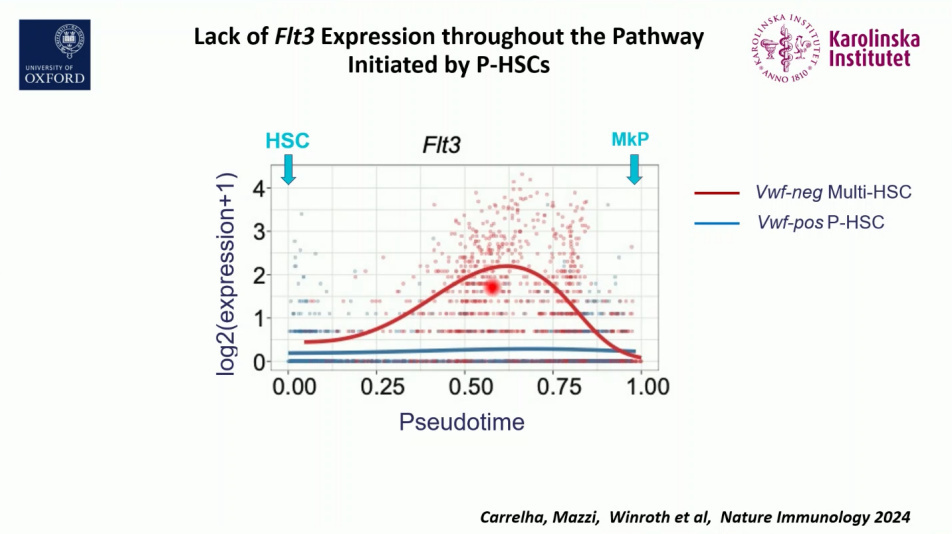 基于上述发现,一个更深层次的问题浮出水面:这些不同类型的干细胞是如何产生血小板的?它们是否使用相同的下游祖细胞通路?Jacobsen教授团队的研究揭示了一个令人振奋的“双轨制”模型。