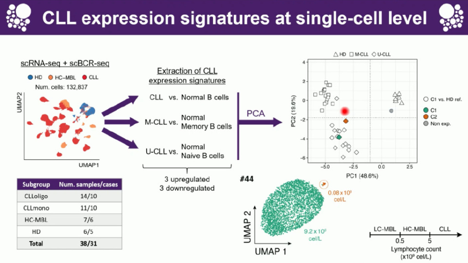 传统观点认为,慢性淋巴细胞白血病(CLL)是一种单克隆疾病,所有肿瘤细胞均源自同一个原始细胞,因此共享相同的B细胞受体(B-cell Receptor, BCR)。然而,临床上约有5%至10%的CLL病例以及更高比例的癌前病变——单克隆B细胞淋巴细胞增多症(Monoclonal B-cell Lymphocytosis, MBL)中观察到了寡克隆现象。这些线索表明,CLL的起源可能比我们想象的更为复杂,或许存在一个多克隆的起源过程。为了探究这一问题,来自西班牙著名血液病理学家Elias Campo教授实验室的一位青年学者,在本次大会上系统报告了他们团队的最新研究成果。
