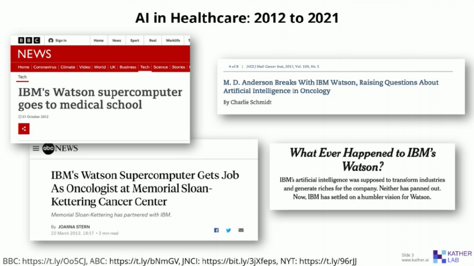 报告伊始,Kather教授回顾了AI在肿瘤学领域的两次发展浪潮。他指出,许多人还记得十余年前,以IBM“沃森肿瘤解决方案”(Watson for Oncology)为代表的第一次AI热潮。当时,业界对其寄予厚望,但最终因承诺未能兑现而逐渐沉寂。然而,技术的脚步从未停歇。随着2023年ChatGPT的问世,我们迎来了由大型语言模型(Large Language Models, LLMs)驱动的全新AI时代。