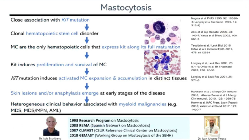Orfao教授将演讲聚焦于一个常被忽视的罕见病——肥大细胞增多症(mastocytosis)。他指出,这是一个理想的研究模型,因为它具有几个鲜明的特点: